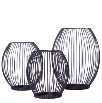 ชุดเชิงเทียนโลหะสีดำ3อันสำหรับตกแต่งในร่มและกลางแจ้งรวมถึงโคมไฟและขวดเทียน